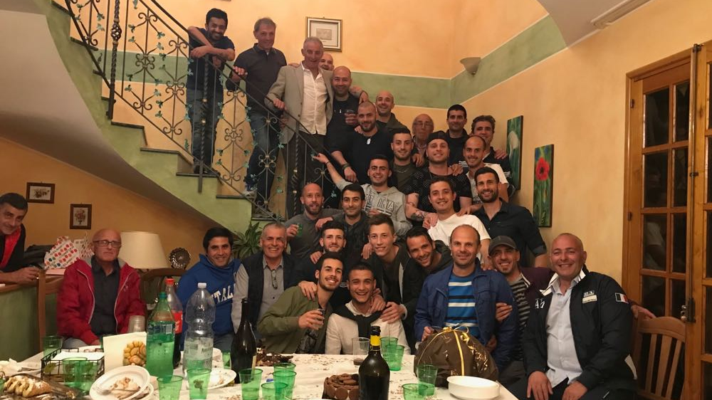 Cena sociale nella giornata di ieri per tutta la famiglia della Nasitana. I campioni del girone C di 2a Categoria si sono riuniti in serata presso l’Osteria della Palme a Naso per celebrare la recente promozione in 1a Categoria. Al termine della cena tutto il gruppo si è trasferito a casa di Cono Bontempo, ex-portiere della Nasitana e padre dell’attuale portiere della Nasitana, Francesco, per festeggiare i compleanni dello stesso Francesco e di Luca De Carlo.